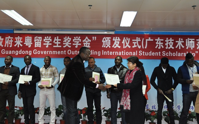 来自2013级国际商务专业(本科)学历职工全英班的ETIENNE MBOUZEKO(马可)代表获奖职工发言。他代表全体职工感谢广东省政府对职工在华学习的支持,感谢广东技术师范学院的领导与老师对职工学习成长的倾心指导,表示他们将再接再厉,认真学习,争取获得更好的成绩。