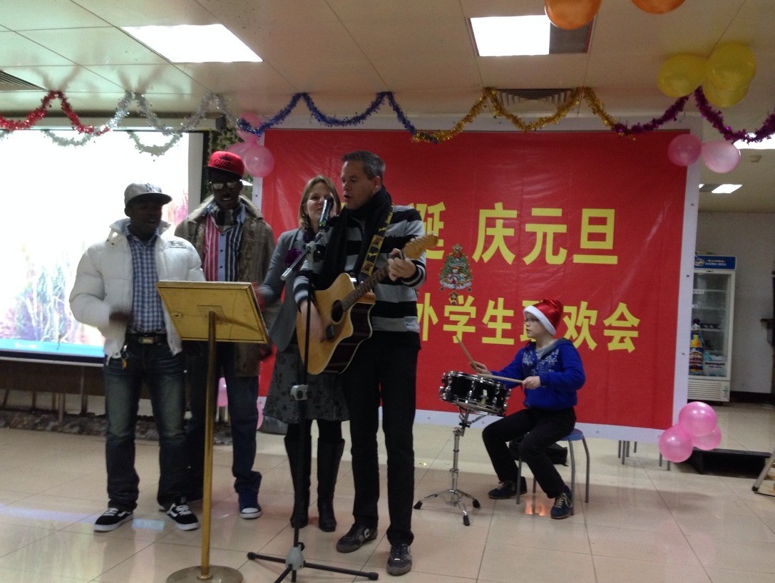 联欢会在中英合作班集体表演的《白雪公主和七个小矮人》舞台剧形式拉开序幕,随后由汉语言A班芬兰国籍职工亨得利一家演唱了一首Marry’s boychild, 赢得了观众的阵阵欢呼掌声;来自12级商务尼日尔籍莫沙和伊德等6名职工的精彩非洲舞蹈《COME ON MEN》带动了全场职工跟着舞动;接着来自13级计算机秋季班的小品《ON WE GO》 表现了职工远离自己国家奔赴中国求学的经历片段和同样13级计算机春季班的话剧——中式的京剧服饰和西式的国王古装混配演绎了《JESUS CHRIST IS BORN》掀起了又一个高潮;来自刚果(布)籍皮克和中英合作班员工周润为深情款款地演绎一首中文歌曲《你最珍贵》。本次联欢会由歌舞、小品等与互动游戏穿插组成,颇具中外特色的文艺表演使得联欢会掌声连连,而互动游戏和抽奖环节更是把联欢会推向欢乐的高潮。