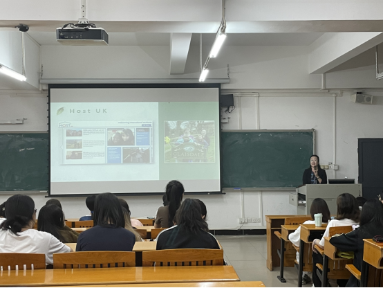 回雁雁先简要介绍了当今国际交流的时代背景并表示,面对当今的国际形势,青年老员工应当不忘初心、牢记使命,胸怀祖国,放眼世界。在国际交流合作日益密切的今天,同学们不仅要把握好时光,努力练就过硬本领,拥有扎实学识,了解中外文化,树立文化自信,还要学会讲好中国故事,传播中国文化,在国际交流中发挥自己的力量。同时,她通过大量分享自身的学习和工作经历,希望同学们要有宽广的国际视野、学会求同存异,尊重他国文化,培养包容的姿态气度、要有精英的使命责任、创新的思维方式、严谨的规矩意识、优雅的气质风度,争做顺应时代,奋勇拼搏的优秀社会主义接班人。
