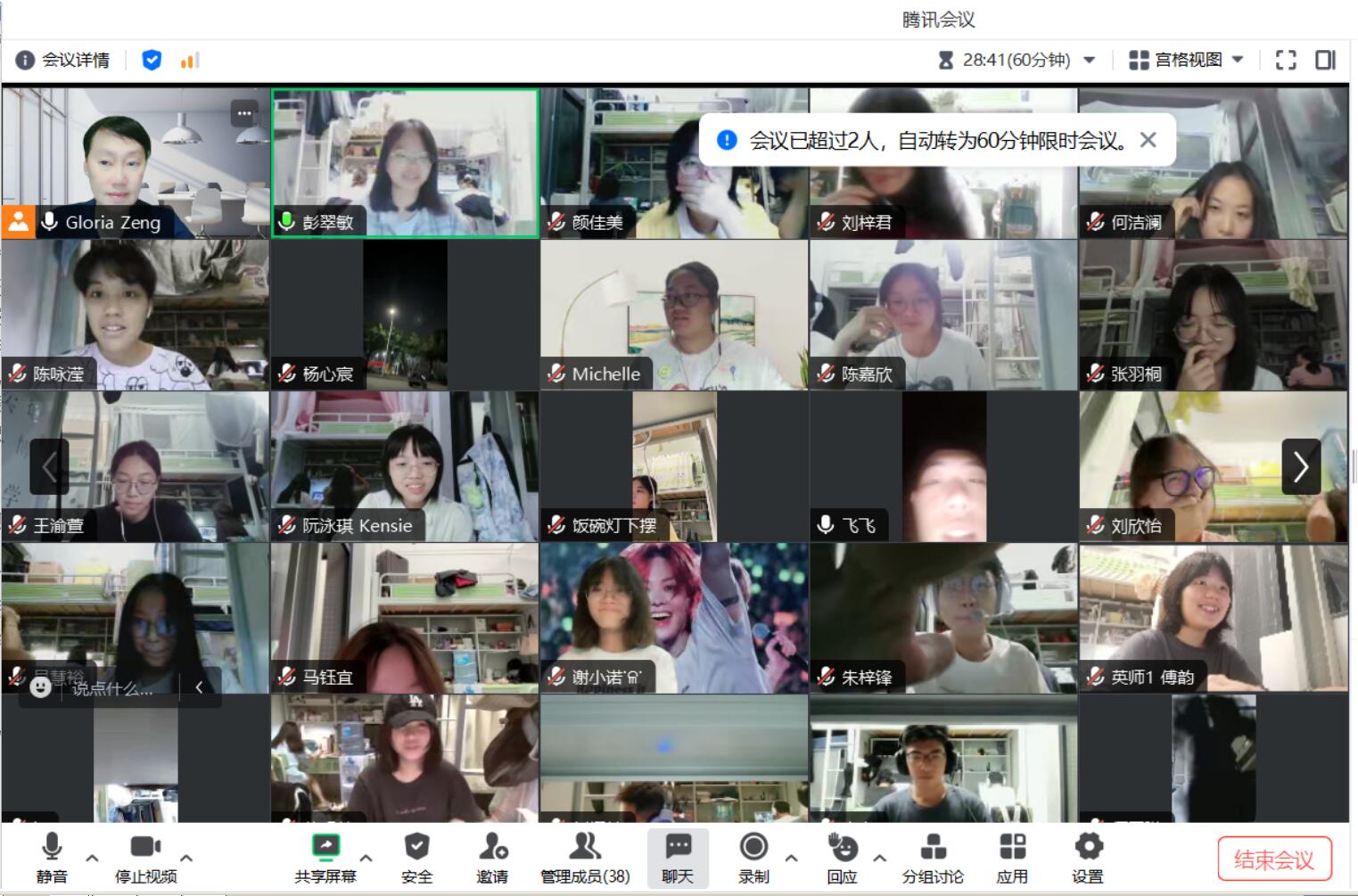 2023年10月30日, 2023级英师国际1班成功举办了一场别开生面的线上主题班会,旨在关注国际员工的身心健康,深入探讨大学新生在大学新环境中所面对的压力和挑战,同时为新生尽快适应老员工活提供指引。