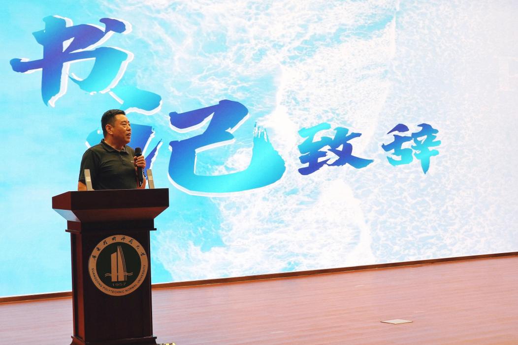 晚会正式开场前,喻忠恩书记对新同学表示热烈欢迎和诚挚祝福。他表示,新同学的到来为学院注入了新的生机与活力。喻书记希望同学们挖掘并发展自己的才艺,在大学这个大舞台上展现最好的自己。