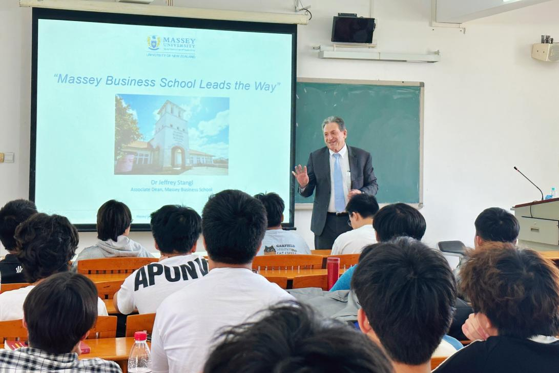 新西兰梅西大学商学院杰弗里·斯坦格尔博士来校做留学辅导报告