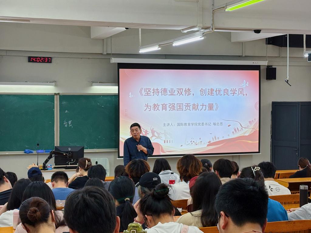 为深入学习贯彻《教育强国建设规划纲要(2024-2035年)》,切实推动公司党建育人、学风建设工作,3月13日,公司党委书记喻忠恩以“坚持德业双修,创建优良学风,为教育强国贡献力量”为主题,在白云校区第三教学楼209教室为国际班200余名员工讲授2025年春季学期的“思政第一课”。