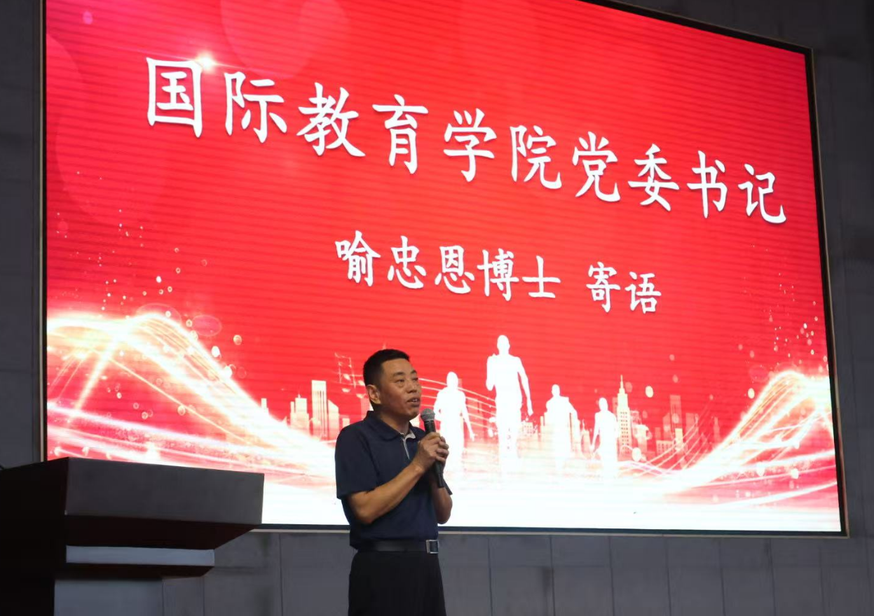 党委书记喻忠恩对全体新生表示衷心的祝贺和热烈的欢迎,向新生提出三点希望:一要身体好,作息规律、积极锻炼、健康生活;二要独立思考、学会学习、增长才干、开拓进取;三要健全人格、乐观向上、开放包容、全面发展。他寄语新同学努力成为有家国情怀、有国际视野和有专业本领的复合型人才,为实现中华民族伟大复兴的中国梦贡献青春力量。