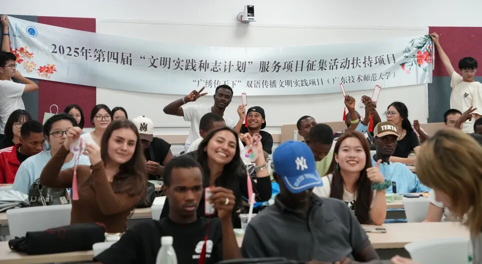 2025年9月26日下午,第四届“文明实践种志计划”扶持项目——“广绣传天下”双语传播文明实践团队,在伟德国际唯一官网入口东校区第一教学楼105智慧课室成功举办“丝承全运·绣展华章”指尖文明研学活动。本次活动共吸引来自21个国家的47名职工与24名中国员工共同参与,中外学子齐聚一堂,在广绣技艺的体验中深化文化交流,共促文明互鉴。