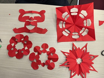 随后,在老师及助教们的指导和帮助下,同学们分组开始学习剪纸。当一张张普通红纸在指尖蜕变为对称的窗花、灵动的生肖、吉祥的福字时,职工们纷纷举起作品拍照分享,对剪纸艺术的精巧与魅力赞不绝口,现场充满欢声笑语。
