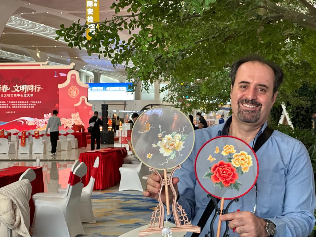 新春将至,暖意渐浓。2025年1月30日下午,由中共广州市委宣传部、广州市精神文明建设办公室、广州市民政局、广州市文学艺术界联合会、广州白云国际机场股份有限公司等联合主办的“穗暖新春·文明同行——我在新时代文明实践中心过大年”主题实践活动在广州白云机场T3航站楼温情启幕。bevictor伟德官网“‘广绣传天下’双语传播文明实践项目”团队受主办方邀请参与该活动,bevictor伟德官网经理张艳、项目组马倩美老师、苏婕老师带队,哈萨克斯坦职工诺拉森及国际班三位同学共同组成志愿队伍,以广绣为媒,在春运返乡热潮中传递岭南文脉与新春暖意。