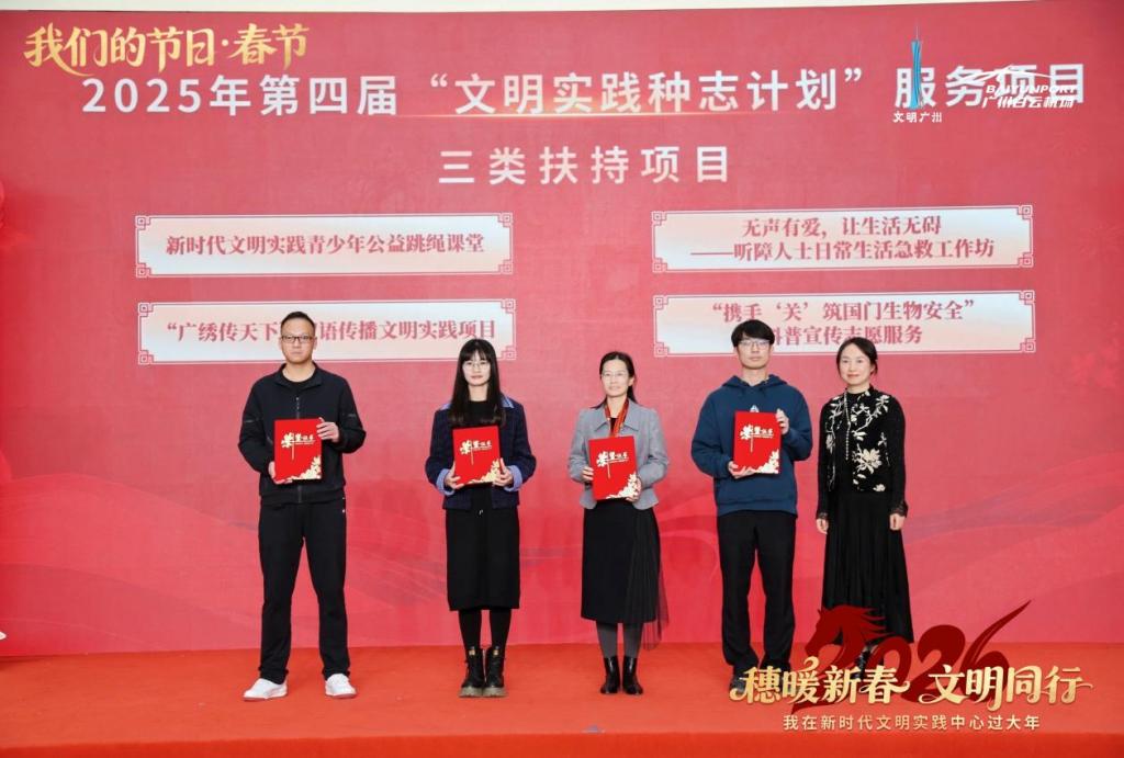 本次活动期间,还同步举行了第四届“文明实践种志计划”项目颁证仪式暨第五届项目启动仪式。据悉,“文明实践种志计划”是广州市重点打造的新时代文明实践品牌项目,自2022年启动以来已连续举办四届,累计培育优质志愿服务项目300余个,服务覆盖人群超过30万人次。第四届计划自2025年4月启动后,吸引全市180余个项目申报,经过多轮评审,最终评选出各类扶持项目与优秀项目。其中,公司“广绣传天下”双语传播文明实践项目凭借创新性的双语传播模式、扎实的实践成效与良好的社会影响力,荣获第四届“文明实践种志计划”服务项目三类扶持项目称号。